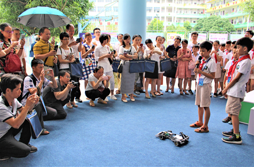 学员们观摩河池市第三小学科技教育活动成果展示