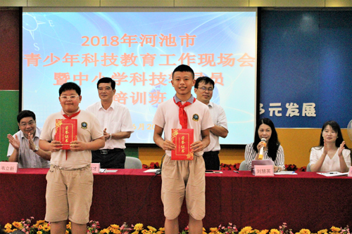 河池市荣获第33届全国创新大赛奖项的选手代表获得表彰
