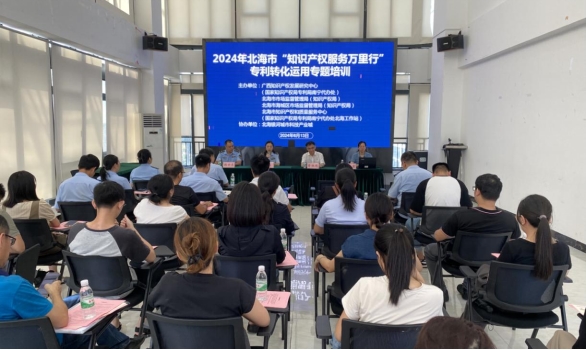 专题培训在北海银河城市科技产业城举行,邀请广西知识产权发展研究中心领导及专家为知识产权企业代表进行专利转化运用培训。培训会介绍了国家知识产权专利局南宁代办处及北海工作站的服务内容及事项,明确了企业办理专利业务的相关途径。同时,围绕专利实施许可和专利开放许可业务,结合具体案例、实务操作进行了现场授课,解答知识产权公共服务的疑难问题,进一步提升企业知识产权转化运用意识,增强企业知识产权综合能力。