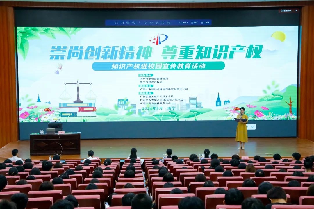 9月20日,南宁市市场监管局、南宁市知识产权局联合广西质量工程职业技术学院、广西民族大学法学院/知识产权学院等单位开展知识产权进校园宣传教育活动,进一步推进知识产权宣传教育,全面增强高校师生知识产权创造、运用和保护意识,努力提升高校知识产权工作法治化水平。
